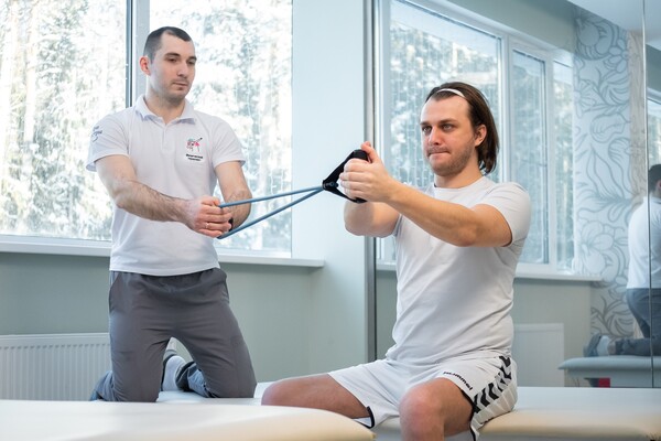 Ведущая роль в реабилитации после спортивных травм отводится физическому терапевту, который должен оценить физическое состояние пациента и подобрать для него такие упражнения, чтобы добиться постепенного восстановления и снижения болевого синдрома.