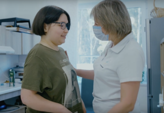 После удаления опухоли Надя оказалась парализована и не могла говорить. Дышала и принимала пищу через трубки. На реабилитации Надя была вертикализирована, начала говорить односложные фразы с закрытой трахеостомой. Перед выпиской Надя ходила с поддержкой, умывалась, одевалась и сама принимала пищу.