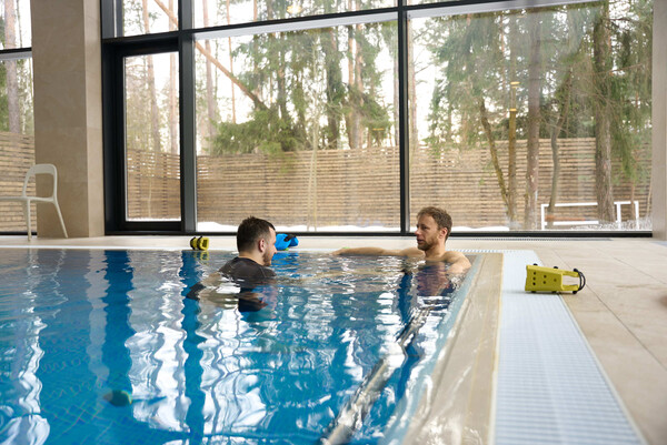 Также при спастике после инсульта полезны занятия в бассейне. В воде легче выполнять растяжки, тренировать равновесие и координацию. В бассейне пациенты обычно чувствуют себя увереннее при выполнении упражнений, чем в зале.