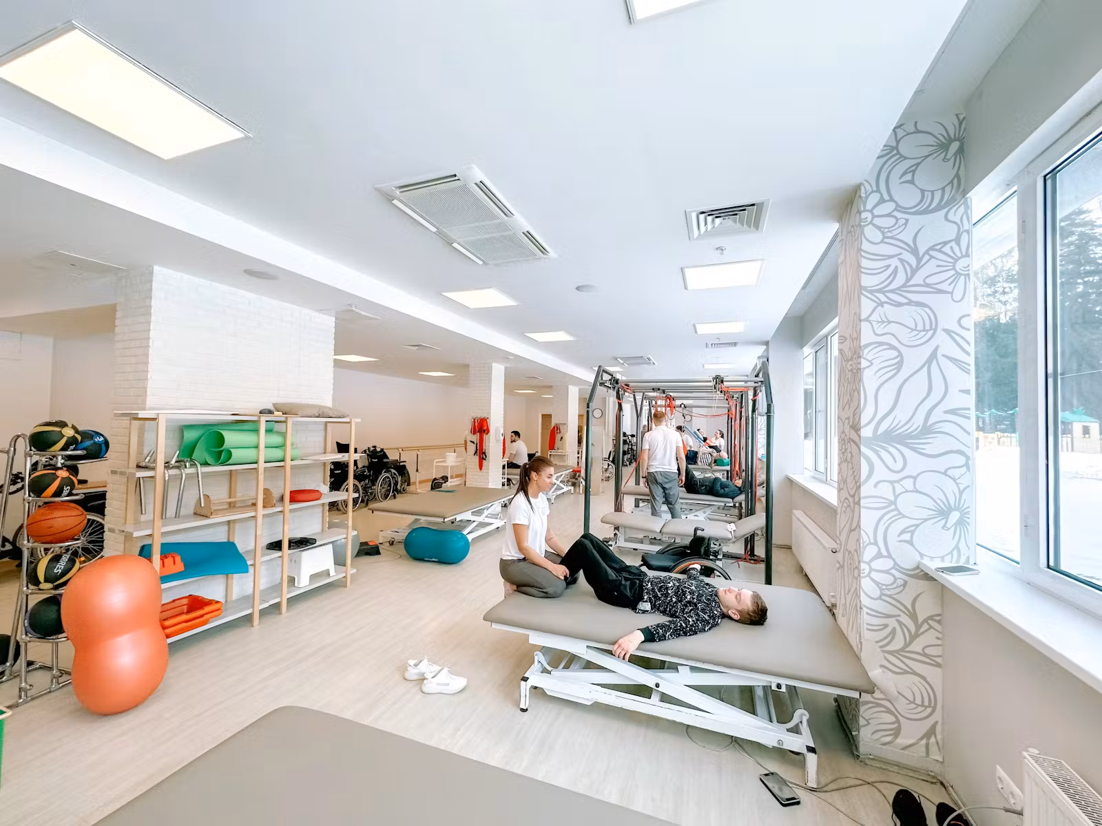 Занятия занимают 4-6 часов в день. Специалисты разрабатывают программу для каждого пациента индивидуально: ребенок после болезни хочет снова учиться и кататься на самокате, а пожилой мужчина после инсульта — сам готовить и ходить в магазин. Здесь каждому нужны свои упражнения и методы работы, и мы их продумываем после диагностики и общения с пациентом и его семьей. Всё пребывание проходит в комфортных условиях с вкусным питанием и большой территорией для прогулок на свежем воздухе.