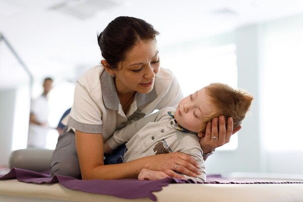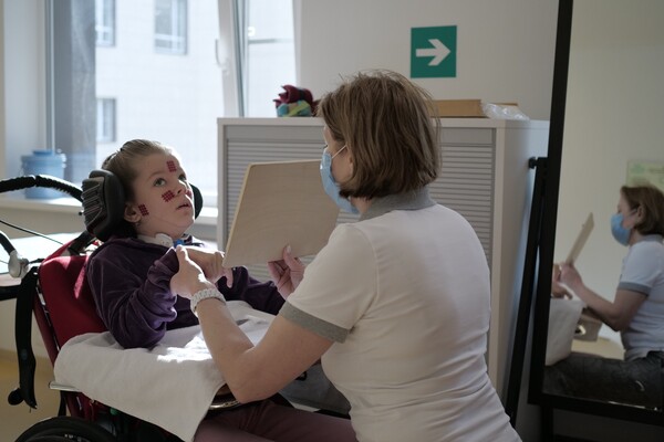 С детьми, как и со взрослыми пациентами, работает междисциплинарная бригада — детский невролог, физический терапевт, эрготерапевт, психолог, логопед, медсёстры и помощники по уходу. Раз в несколько дней специалисты собираются и обсуждают пациентов, каждый со своей профессиональной точки зрения. Ставят краткосрочные и долгосрочные цели, отслеживают промежуточные результаты и общаются с родителями.