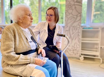В нашем центре работает штат медицинских сестёр и помощников по уходу. Они помогают пациентам соблюдать гигиенические процедуры, принимать пищу, одеваться, вовремя принимать необходимые препараты, выходить на прогулки. Специалисты заботятся о правильном позиционировании пациента в кровати и соблюдают все необходимые рекомендации во избежание осложнений. Кроме того, в нашем центре абсолютно доступная среда — ровный пол без порогов, перила, широкие дверные проёмы, лифты, функциональные кровати. У нас комфортно людям с любыми ограничениями в движении.