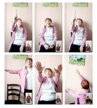 Физический терапевт проводит диагностику и занятие по видеосвязи, отвечает на вопросы. После занятия специалист записывает видео с упражнениями для домашнего выполнения.