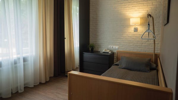 Палаты оборудованы тревожными кнопками, функциональными кроватями, специальными раковинами, поручнями. В каждой палате — своя ванная с душем и туалетом. На территории центра работает wi-fi. К нам можно приехать в сопровождении родственника. При этом медсестры готовы взять все процедуры ухода на себя.