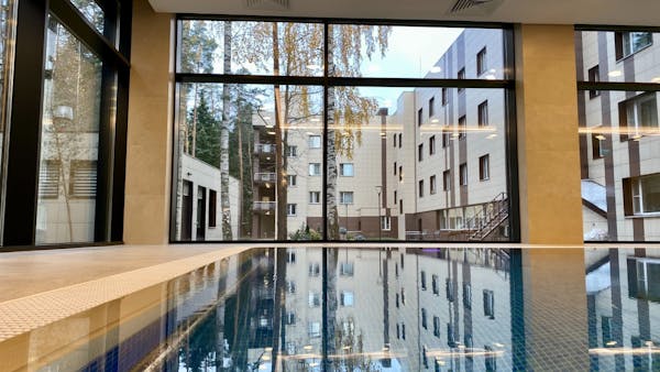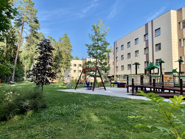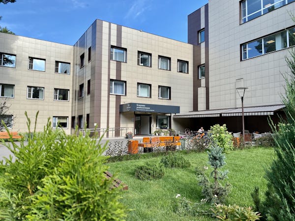 Наша клиника — четырёхэтажное здание площадью 6 тысяч квадратных метров. Она находится в 30 км от Москвы в живописном лесу, поэтому пациенты могут проводить время на свежем воздухе. Неслучайно многие центры Германии и Швейцарии находятся на природе: удалённость от города позволяет сосредоточиться на физическом и эмоциональном восстановлении.